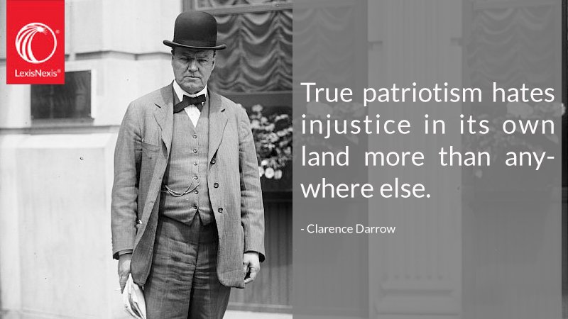 Clarence Darrow teaches us that true patriotism hates injustice in its own land more than anywhere else. True patriotism hates injustice in its own land more than anywhere else - Clarence Darrow Sign Our Petition to Gov. True patriotism hates injustice in its own land more than anywhere else.